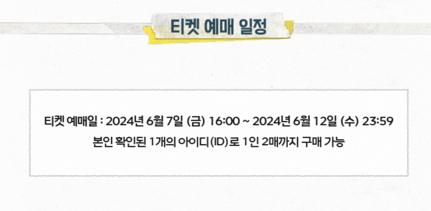 - 예매 마감: 6월 12일 수요일 오후 11시 59분