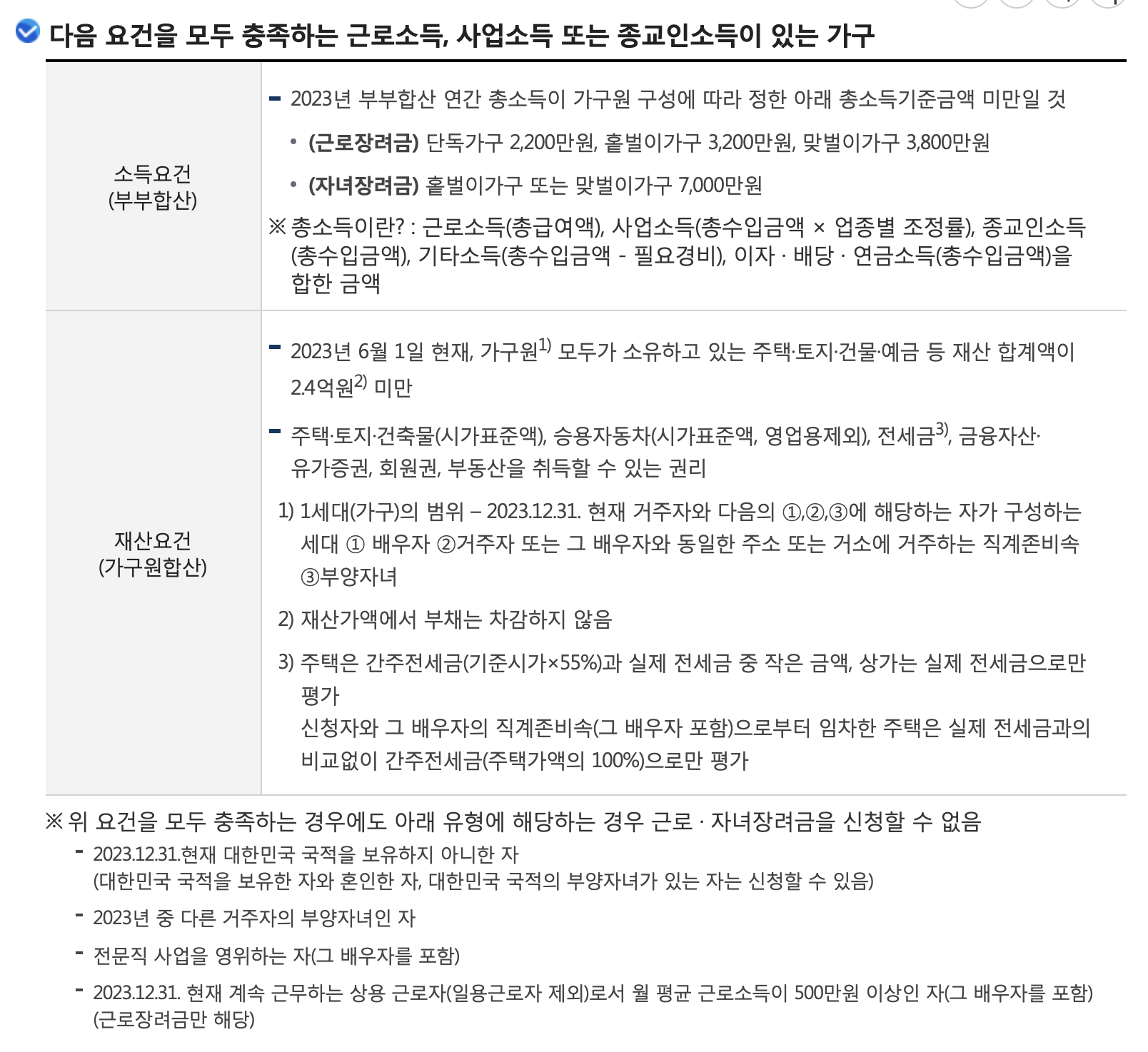 재산 요건은 근로장려금 및 자녀장려금의 공정한 분배를 보장하기 위해 설정된 중요한 기준입니다. 이 요건을 통해 실제로 경제적 지원이 필요한 저소득 가구만이 혜택을 받을 수 있도록 하며, 사회적 자원의 효율적 사용을 도모합니다.
