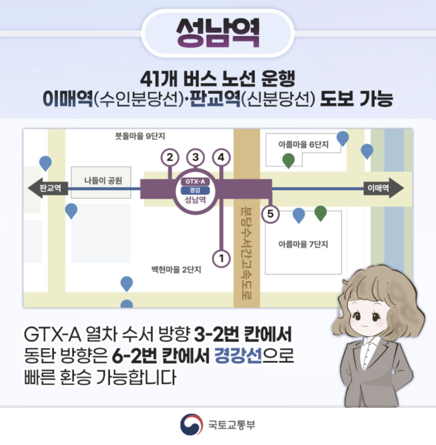 GTX-A 성남역 환승 열차 번호 칸